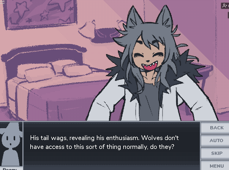 senbei is a genocidal piece of shit nepo baby loser and i want to see him suffer a lot too, but i also love seeing him so stressed over his failures with getting anything from timber. the writing is so fun in letting me enjoy hearing what senbei has to think and feeling happy when he loses. he's a horrible person who likes feeling smart and strong and hates wolves for being wolves, so he wants to use the missing persons cases as an excuse to justify driving wolves to extinction. i'm fascinated by his character and want to keep watching him struggle and lose. he's in a much stronger position of power than any of the other characters in the game, but timber manages to hold his own against him physically and intellectually. this makes me like and respect timber a lot too! he's deeply traumatized by senbei but doesn't give up on his own life and his clan, and he finds a lot of support in trusting the player character in the wolf route. as the player, we get to play an active role in his recovery and growth.